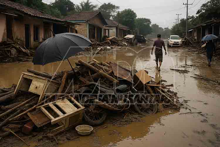 ACEH TAMIANG | DN — Genap 25 hari pascabanjir besar yang melanda Kabupaten Aceh Tamiang, Provinsi Aceh, kondisi sejumlah wilayah masih jauh dari kata pulih. Kawasan perkotaan seperti Kecamatan Kota Kuala Simpang dan Karang Baru masih dipenuhi lumpur, tumpukan kayu, serta perabotan rusak yang belum terangkut.