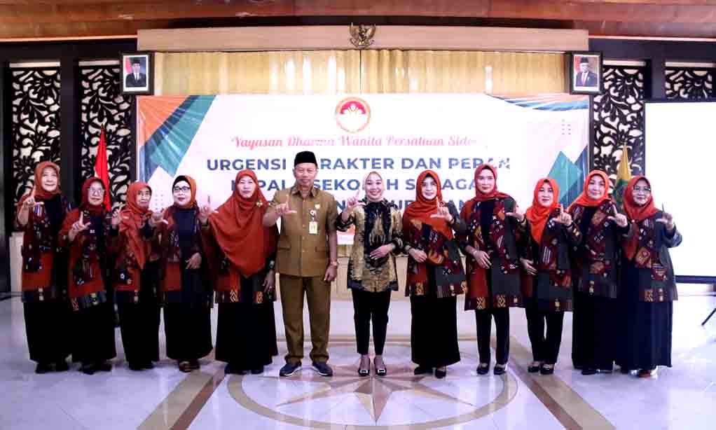 SIDOARJO | MDN – “Siapa disini yang gajinya masih Rp 150 ribu,” tanya dr. Hj. Sriatun Subandi, Pembina Yayasan Dharma Wanita Persatuan (DWP) Kabupaten Sidoarjo saat membuka Pelatihan Kepala Sekolah yang bertajuk “Urgensi Karakter dan Peran Kepala Sekolah sebagai Pemimpin Perubahan” di Pendopo Delta Wiabawa, Senin (8/7).