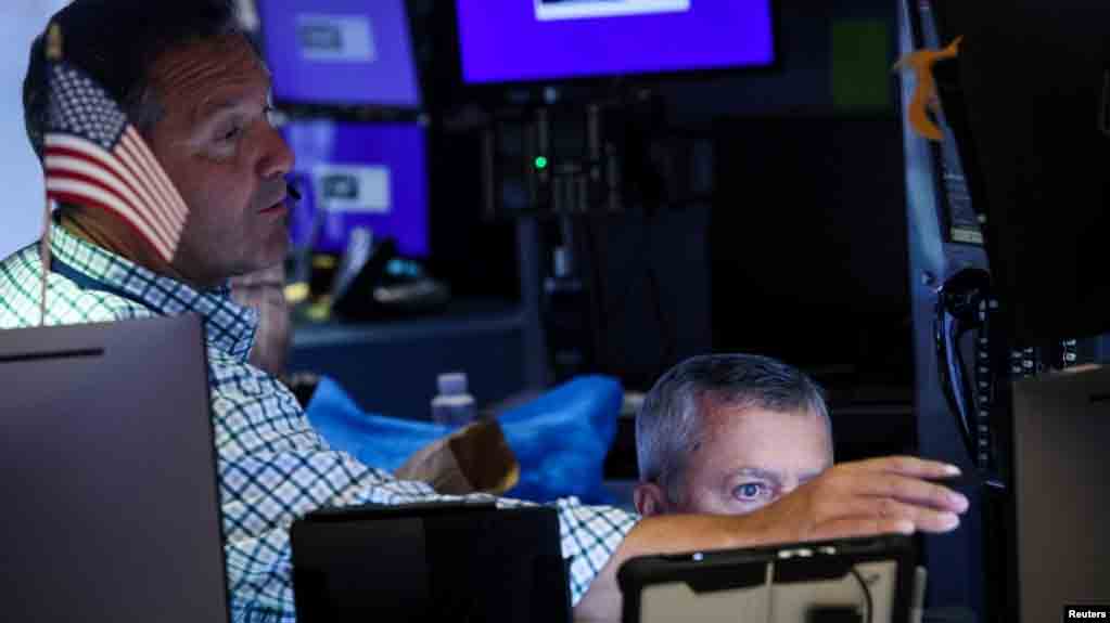 FILE - Pedagang di lantai bursa New York Stock Exchange (NYSE) di New York City, AS, 3 Juli 2024. (REUTERS/Brendan McDermid)