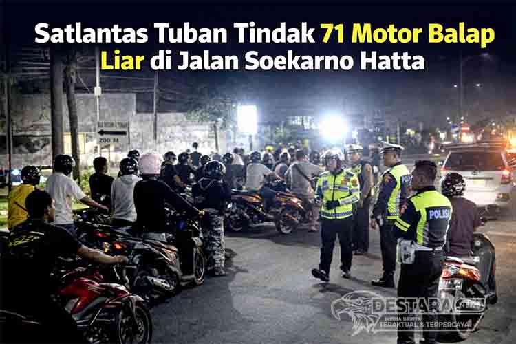 TUBAN | DN – Satuan Lalu Lintas (Satlantas) Polres Tuban menindak tegas aksi balap liar yang meresahkan warga di Jalan Soekarno Hatta, Kabupaten Tuban, Jawa Timur. Sebanyak 71 unit sepeda motor berhasil diamankan dalam operasi penertiban yang digelar pada akhir pekan.