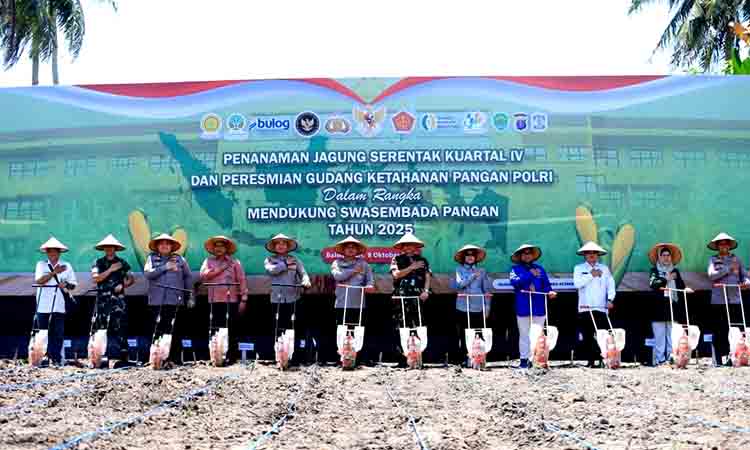 BALIKPAPAN – DN | Pangdam VI/Mulawarman Mayjen TNI Rudy Rachmat Nugraha, S.I.P., M.Sc., menghadiri kegiatan Penanaman Jagung Serentak Kuartal IV Tahun 2025 di Mako Polsek Balikpapan Timur, Kelurahan Lamaru, Balikpapan, Rabu (08/10/25). Kegiatan ini diikuti lebih dari 100 peserta dari unsur Forkopimda, dinas pertanian, Bulog, serta kelompok tani.
