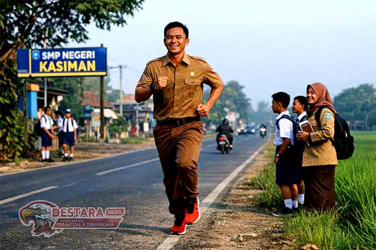 BOJONEGORO | DN – Kebiasaan unik seorang guru olahraga di Kabupaten Bojonegoro, Jawa Timur, menarik perhatian publik. Ahmad Zaki Febiansyah (34), pengajar Pendidikan Jasmani, Olahraga, dan Kesehatan (PJOK) di SMP Negeri Kasiman, memilih berlari sejauh 4 kilometer setiap hari menuju sekolah, alih-alih mengendarai sepeda motor.