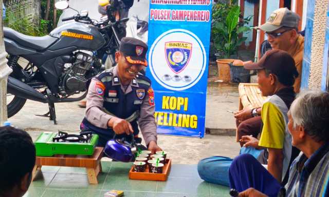 kopi keliling, sebuah program yang mengajak warga berdiskusi santai sambil menikmati secangkir kopi, dan sekaligus menyampaikan himbauan Kamtibmas tentang pentingnya kerukunan antar warga masyarakat, dan sebagai wujud Bhabinkamtibmas Polri selalu dekat dan hadir di tengah-tengah masyarakat dalam situasi apapun, serta sebagai sarana dialogis dengan warga masyarakat perdesaan guna menyerap informasi tentang gangguan Kamtibmas dan gejolak sosial yang muncul di masyarakat, untuk diketahui dan sebagai bahan tindak lanjut Ke instansi terkait maupun Ke instansi Kepolisian.