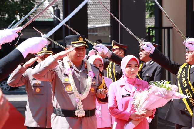 Kegiatan ini menandai peralihan kepemimpinan Kapolres Kediri dari AKBP Agung Setyo Nugroho, S.I.K. kepada AKBP Bimo Ariyanto, S.H., S.I.K.