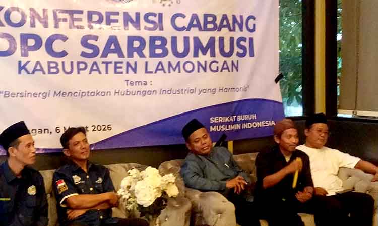 LAMONGAN | DN – Estafet kepemimpinan Serikat Buruh Muslimin Indonesia (Sarbumusi) NU Kabupaten Lamongan resmi berganti. Nihrul Bahi Alhaidar, SH, atau yang akrab disapa Gus Irul, terpilih secara aklamasi sebagai Ketua DPC Sarbumusi NU Lamongan periode 2026–2031 dalam Konferensi Cabang (Konfercab) yang digelar di Onea Cafe, Jalan Kadet Suwoko, Jumat (6/3/2026).
