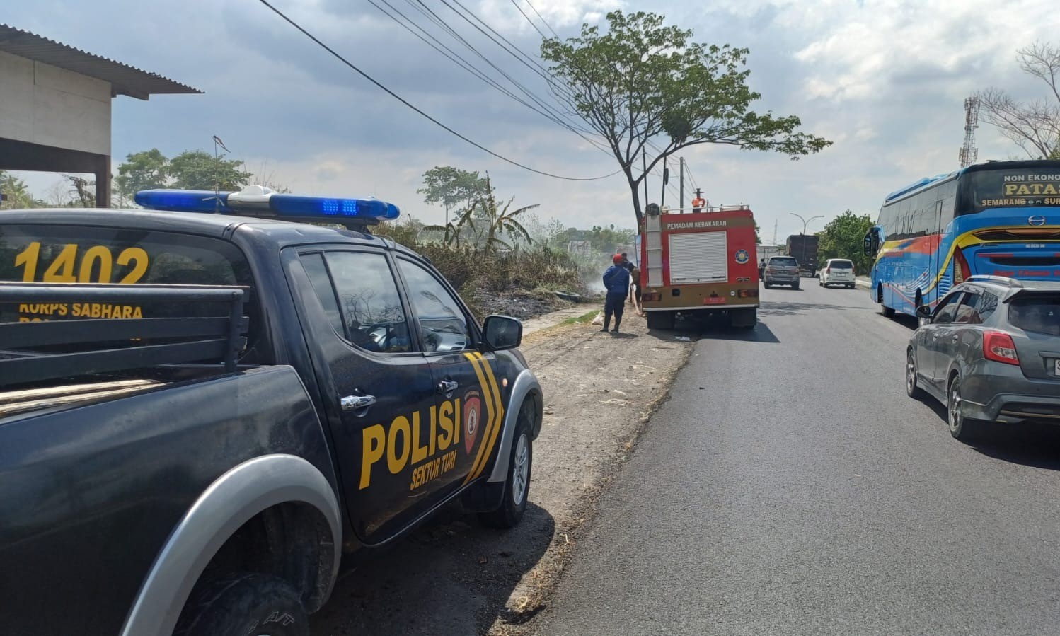 Berdasarkan keterangan saksi, kebakaran tersebut diduga disebabkan oleh puntung rokok yang dibuang oleh pengguna jalan.