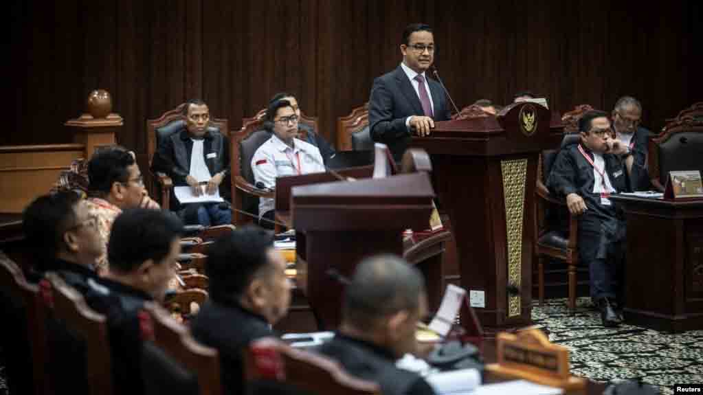 Anies mengatakan pemilu ini menunjukkan negara demokrasi terbesar ketiga di dunia itu berisiko kembali ke masa lalu yang otoriter, dan memperingatkan bahwa hal itu bisa menjadi preseden buruk. “Praktik ini akan dianggap lumrah, suatu kebiasaan,” ujarnya kepada Mahkamah Konstitusi.