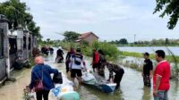 PAC GP Ansor Kalitengah Bersama PT SNR Wujudkan Jalan Darurat di Tengah Genangan Bengawan Njeroh