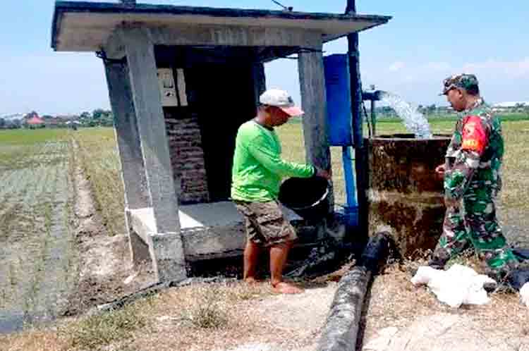 MADIUN | DN – Upaya menjaga ketahanan pangan di wilayah pedesaan terus digencarkan. Babinsa Desa Bagi, Kecamatan Madiun, Kabupaten Madiun, Kopka Iqnatius Erwin, melakukan pendampingan kegiatan pompanisasi air tanah menggunakan mesin sibel untuk mengairi lahan pertanian milik warga setempat.