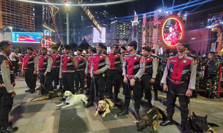 JAKARTA | DN – Korps Sabhara mengerahkan satuan K-9 untuk memperkuat pengamanan malam pergantian Tahun Baru di kawasan Bundaran Hotel Indonesia, Rabu (31/12/2025) malam. Pengamanan dilakukan guna memastikan situasi tetap aman dan kondusif di tengah tingginya aktivitas masyarakat.