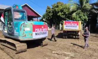 Bantuan Alat Berat Kapolri Dukung Pembersihan Lumpur Pasca Banjir di Pidie