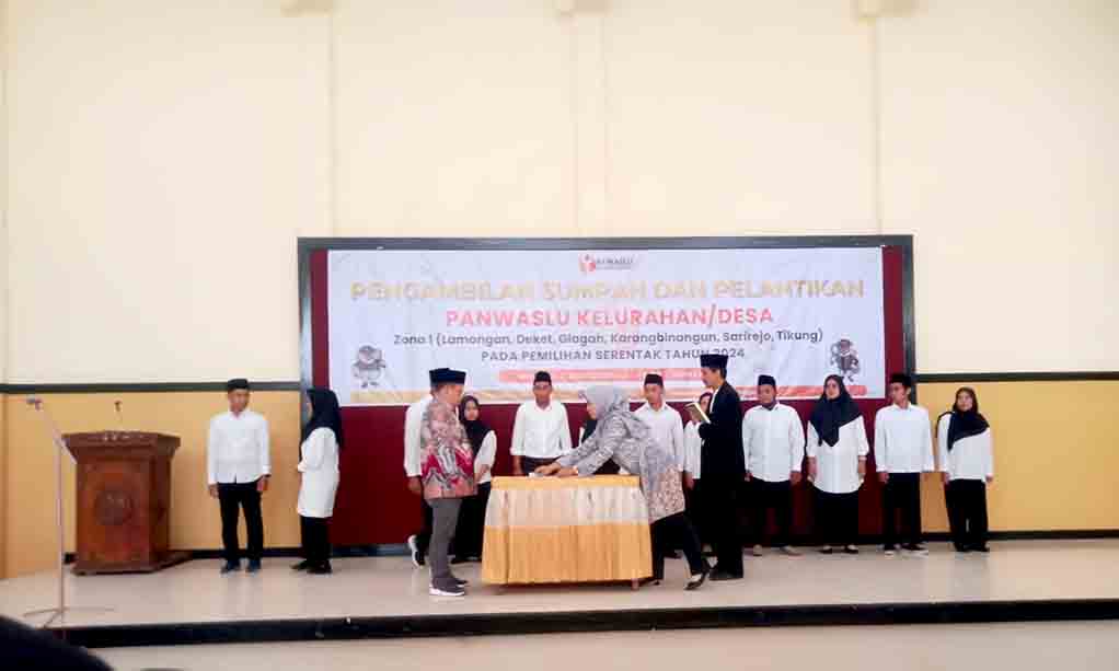 LAMONGAN | DN – Pelantikan Pengawas Pemilu desa/ kelurahan seluruh Zona 1 yang terdiri Lamongan, Deket, Glagah, Karangbinangun, Sarirejo, Tikung berjalan tertib dan sukses. Dalam pelantikan tersebut dihadiri ketua Bawaslu Kabupaten Lamongan Tony Wijaya.SH serta turut hadir jajaran Forkopimcam Lamongan Camat, Kapolsek, Koramil di Gedung KPRI Budi Luhur jalan Sunan Kalijaga Lamongan, Minggu (02/06/2024).