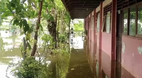 Genangan air yang tak kunjung surut membuat lantai kelas ditumbuhi lumut licin. Kondisi ini dinilai berbahaya bagi keselamatan siswa maupun guru, sehingga pihak sekolah mengambil langkah darurat dengan memindahkan proses pembelajaran tatap muka ke mushola.