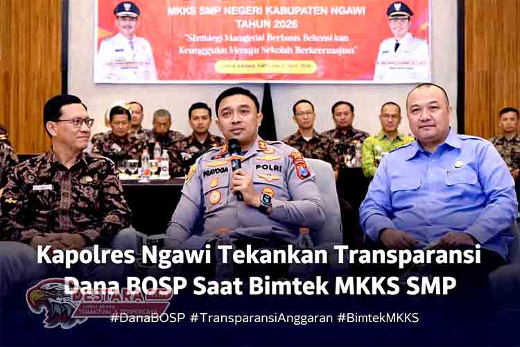 NGAWI | DN – Upaya meningkatkan tata kelola pendidikan di Kabupaten Ngawi terus digencarkan. Kegiatan Bimbingan Teknis (Bimtek) Manajemen Sekolah bagi Musyawarah Kerja Kepala Sekolah (MKKS) SMP Negeri se-Kabupaten Ngawi Tahun 2026 resmi digelar di Hotel Nata Azana Ngawi, Jumat (17/4/2026).