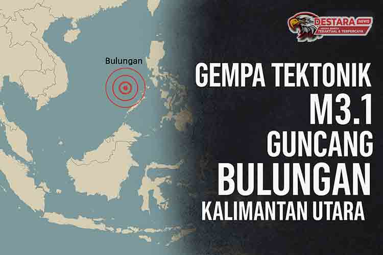 BULUNGAN | DN — Jumat (23/01/2026) pukul 18.01 WIB, masyarakat Bulungan, Kalimantan Utara, dikejutkan oleh guncangan gempa bumi tektonik berkekuatan magnitudo 3.1. Badan Meteorologi, Klimatologi, dan Geofisika (BMKG) mencatat episenter gempa berada di darat, sekitar 41 kilometer selatan Bulungan, dengan kedalaman 45 kilometer.