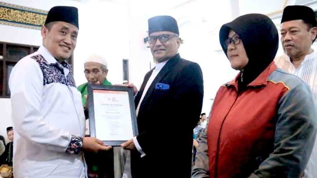 Bantuan berupa sejumlah uang dan paket sembako berisi beras, mie, sarung, gula dan teh itu diserahkan Bupati kepada lansia, anak yatim dan warga tidak mampu di sekitar Masjid Baitussalam tersebut.