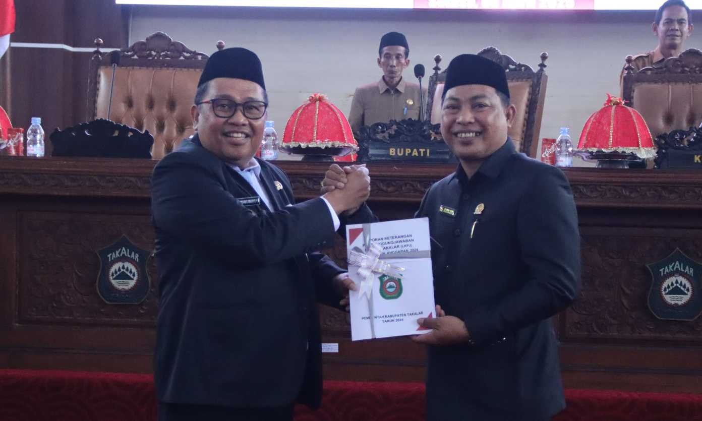 TAKALAR | DN – Penyerahan Dokumen Laporan Keterangan Pertanggungjawaban Bupati Takalar Tahun 2024 oleh Bupati Takalar Ir. H. Mohammad Firdaus Daeng Manye,.MM kepada Ketua DPRD Takalar H. Muh Rijal berlangsung dalam Rapat Paripurna DPRD Kab. Takalar, Selasa 8 April 2025.