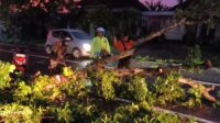 Respon Cepat, Kapolsek Kembangbahu Pimpin Penanganan Pohon Tumbang di Jalan Raya Mantup