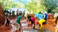 Babinsa Koramil 12/Watukumpul Gotong Royong Bersihkan Sisa Material Lumpur Bersama Warga Desa Tambi