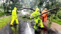 Respon Cepat Polisi dan BPBD Evakuasi Pohon Tumbang, Jalur Magetan – Bendo Kembali Lancar