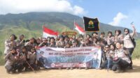 Hari Jadi ke -76 Polwan Polres Mojokerto Kibarkan Bendera Merah Putih di Puncak Gunung Pundak