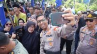 Berbagi Air Minum Saat Aksi Damai Buruh, Kapolres Situbondo Diserbu Emak-Emak Minta Selfie