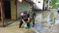 Polisi Bersama TNI dan Warga Gotong Royong Bersihkan Material Luapan Sungai Jurang Dandang di Nganjuk