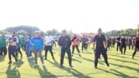 Peringati HUT Brigif 16 Wira Yudha Ke- 17, Kapolres Kediri Kota Bersama Forkopimda Ikuti Fun Bike dan Senam Bersama