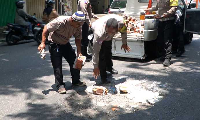 Kasat Lantas Polres Pasuruan, AKP Derie Fradesca mengatakan, sebagai upaya untuk meminimalisir kecelakaan lalu lintas (Laka Lantas) akibat jalan berlubang tersebut, pihaknya menambal dengan puing bangunan.