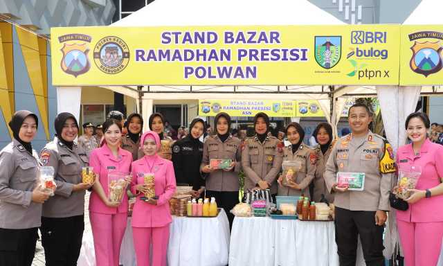 Mereka datang untuk berburu berbagai kebutuhan pokok dengan harga lebih terjangkau dalam kegiatan Bazar Ramadan Presisi yang digelar Polres Kediri Polda Jatim.