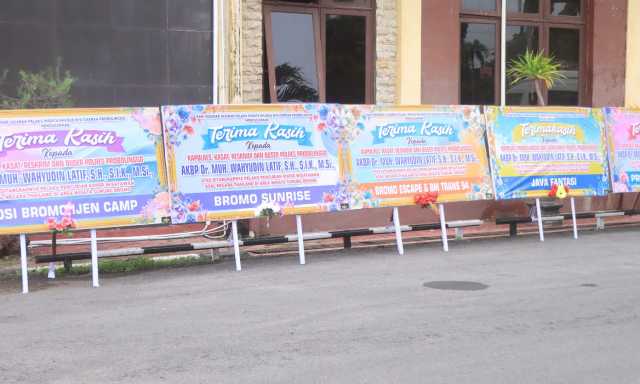 Karangan bunga yang berisi ucapan terimakasih, dukungan serta apresiasi gerak cepat dan kerja nyata Polres Probolinggo Polda Jatim dalam mengungkap tindak kejahatan itu datang dari berbagai elemen dan pelaku pariwisata.