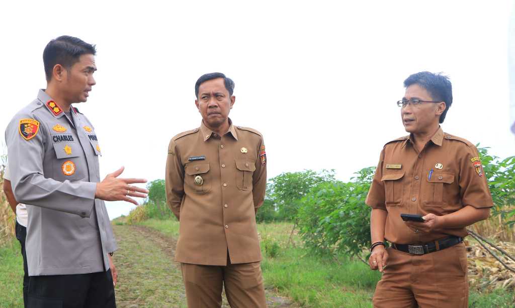 Kapolres Ngawi didampingi Wakil Bupati Ngawi Dwi Rianto Jatmiko, melakukan peninjauan langsung lahan jagung siap panen raya di wilayah Kecamatan Bringin, Kabupaten Ngawi.
