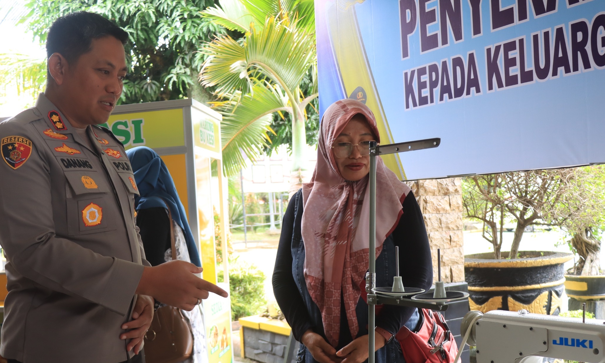 Kapolres Malang, AKBP Danang Setiyo, menyalurkan bantuan sarana pengembangan Usaha Mikro, Kecil, dan Menengah (UMKM) kepada tiga keluarga terdampak dalam sebuah acara yang berlangsung di Mapolres Malang, Sabtu (1/2/2025).