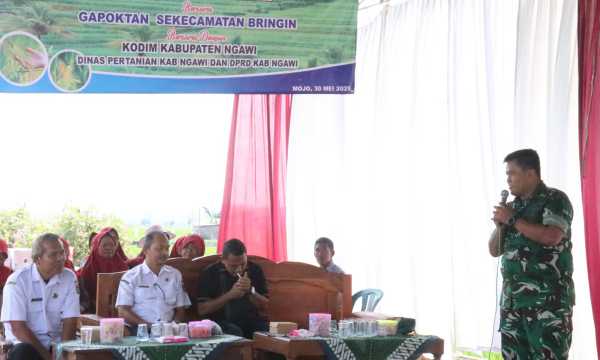 NGAWI | DN – Dalam upaya memperkuat ketahanan pangan dan mendukung program swasembada nasional, Komandan Kodim 0805/Ngawi, Letkol Arh Setu Wibowo, S.Hub.Int.M.H.I.,bersama Dinas Pertanian Kabupaten Ngawi menggelar kegiatan silaturahmi dengan Gabungan Kelompok Tani (Gapoktan) se-Kecamatan Bringin. Kegiatan tersebut berlangsung di Desa Sumberbening, Kecamatan Bringin, Kabupaten Ngawi. Rabu (30/04/2025).