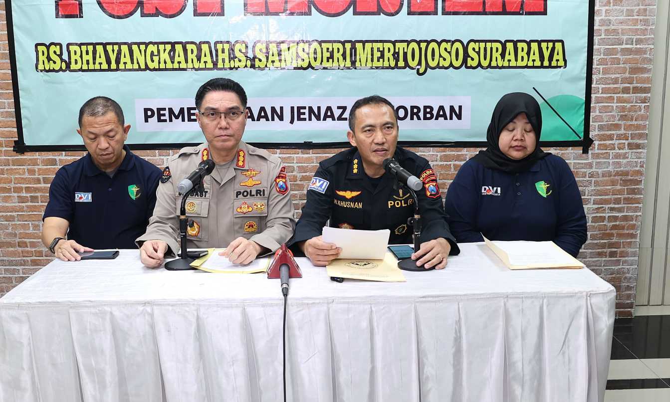 “Pada Selasa, 7 Oktober 2025, tim DVI Polda Jatim telah berhasil melaksanakan identifikasi terhadap 18 kantong jenazah yang terdiri dari 17 jenazah dan 1 body part. 18 kantong jenazah cocok atau match dengan 17 nomor ante mortem,” ujar Kabiddokkes Polda Jatim Kombes Dr dr Mohammad Khusnan Marzuki di RS Bhayangkara, Rabu (8/10/2025).