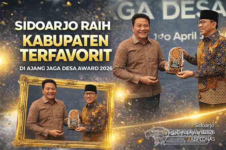 SIDOARJO | DN – Kabupaten Sidoarjo kembali menorehkan prestasi membanggakan di tingkat nasional. Dalam ajang ABPEDNAS Jaga Desa Award 2026 yang digelar di Hotel Fairmont, Jakarta, Minggu (19/4/2026) malam, Sidoarjo berhasil meraih penghargaan sebagai Kabupaten Terfavorit melalui kategori submit film pendek bertema Jaga Desa.