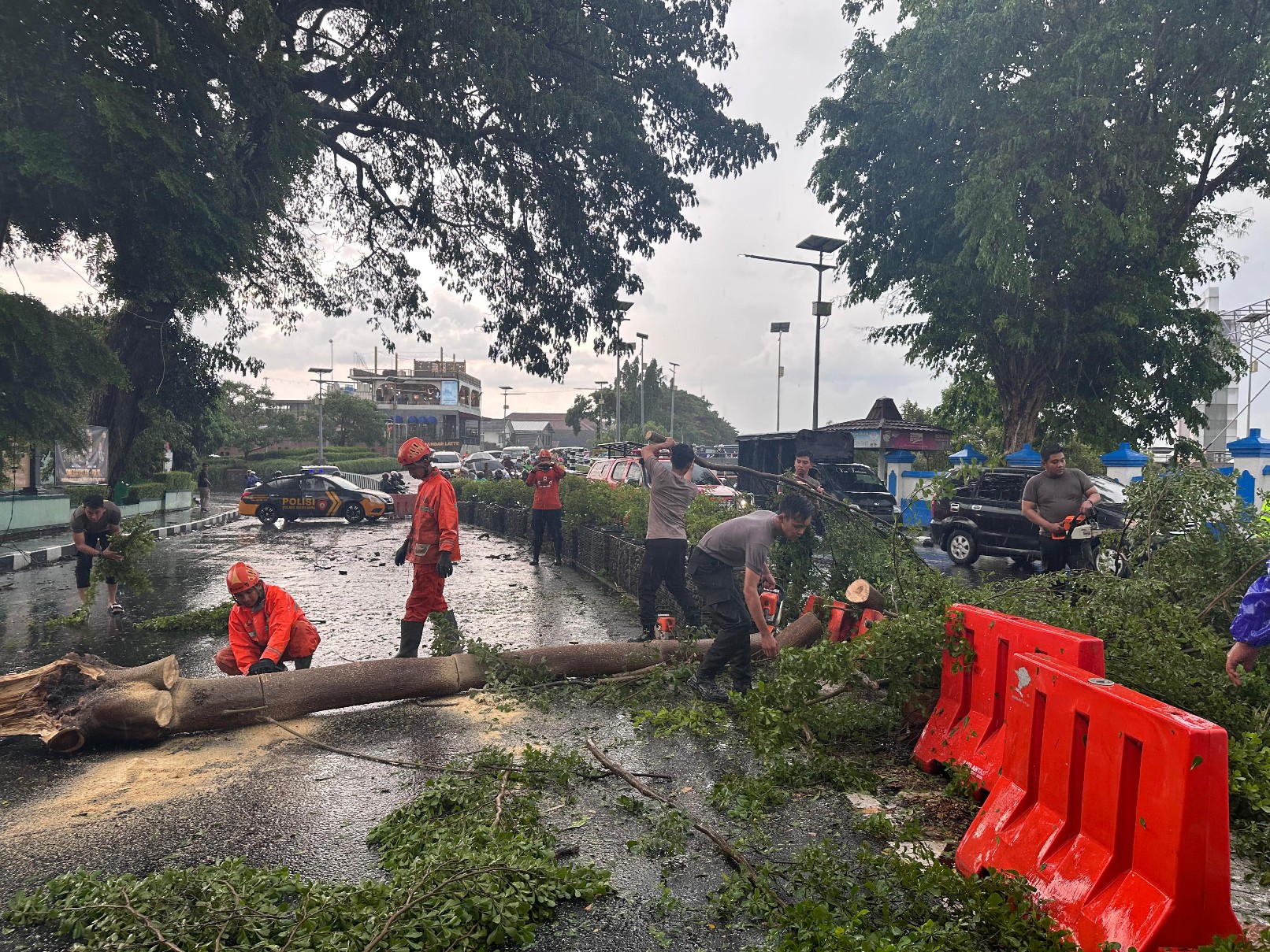 Gercep Polisi Kota Kediri Bersama BPBD Evakuasi Pohon Tumbang di 4 Lokasi