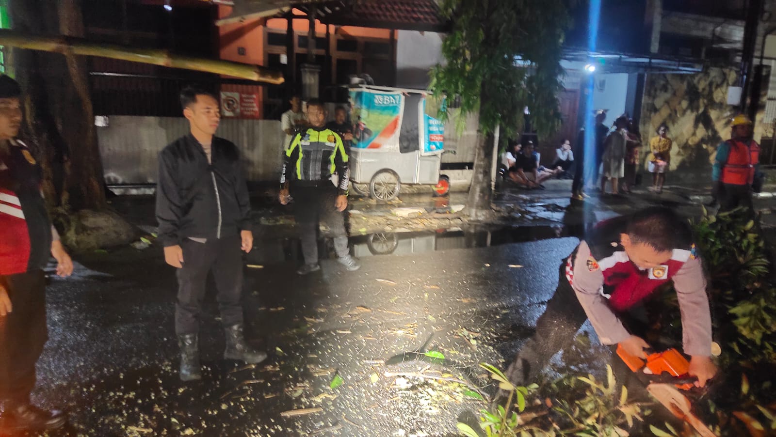 Kapolres Kediri Kota AKBP Bramastyo Priaji, S.H., S.I.K., M.Si. melalui Kabag Ops Polres Kediri Kota Kompol Abraham Sissik, S.Sos., S.H., M.H. mengatakan petugas mendapat laporan dari masyarakat adanya pohon tumbang di jalur mudik yakni di Jl Urip Sumoharjo Kota Kediri