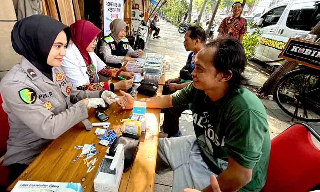 Adapun pemeriksaan yang dilakukan oleh Biddokkes Polda Jatim meliputi,Pemeriksaan Tensi,Pemeriksaan Gula Darah,Pemeriksaan Asam Urat dan Pemeriksaan Kolesterol.