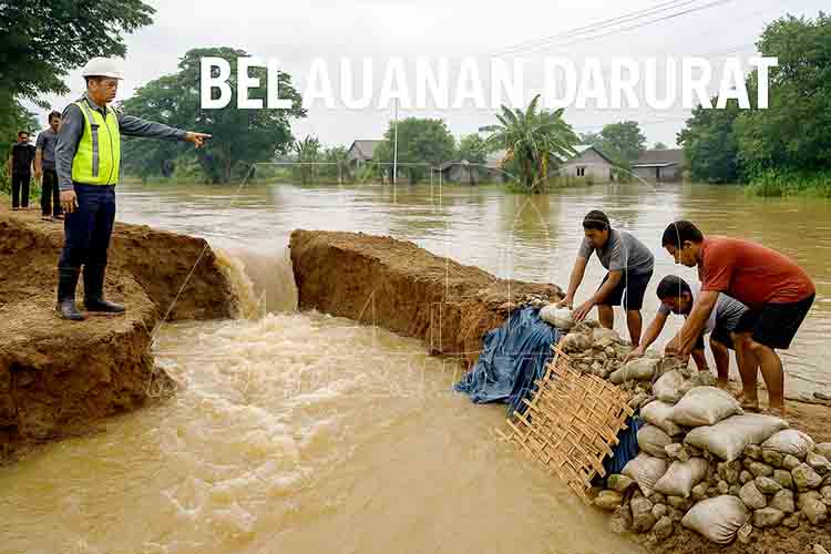 AMONGAN | DN — Jebolnya Tanggul Plalangan di Desa Tambakploso, Kecamatan Turi, Kabupaten Lamongan, akibat hujan deras sejak Minggu (21/12), memaksa Badan Penanggulangan Bencana Daerah (BPBD) melakukan penanganan darurat bersama warga. Peristiwa ini kembali menegaskan rapuhnya infrastruktur pengendali banjir di wilayah Lamongan.