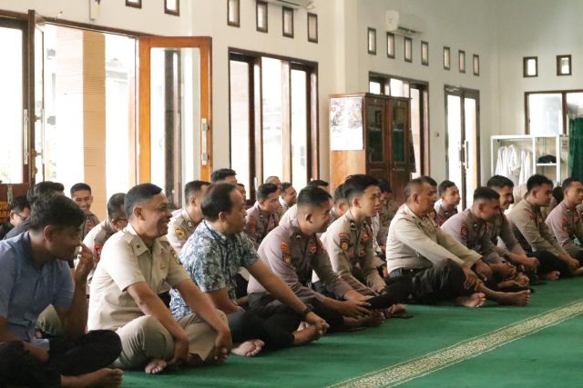 KEDIRI | DN – Secara rutin, anggota Polres Kediri Polda Jatim ikuti kegiatan pembinaan rohani dan mental (binrohtal) di Masjid Al-Aaman Mapolres Kediri setiap minggunya.