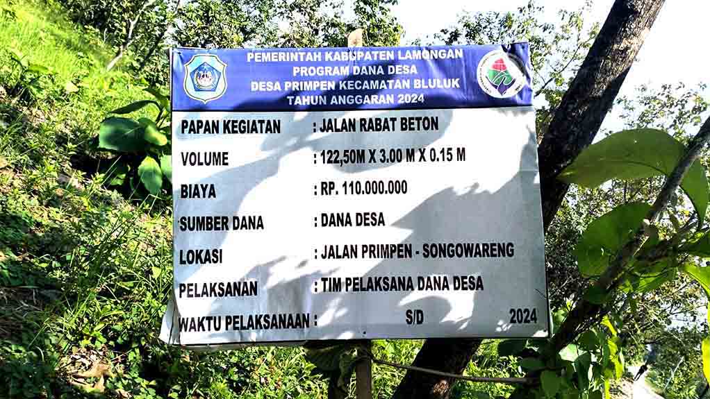 Seperti halnya pembangunan Jalan Rabat Beton Primpen – Songowareng yang dikerjakan oleh Tim Pelaksana DD Primpen, yang anggarannya dari DD Tahun 2024 dengan nilai Rp. 110.000.000,- dengan volume pekerjaan : 122.50M x 3.00M x 0.15M.