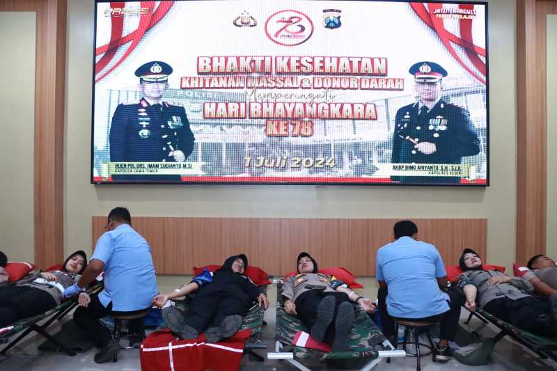 Bakti sosial donor darah ini diadakan di Aula Wicaksana Laghawa Mapolres Kediri, Rabu (26/6/2024).