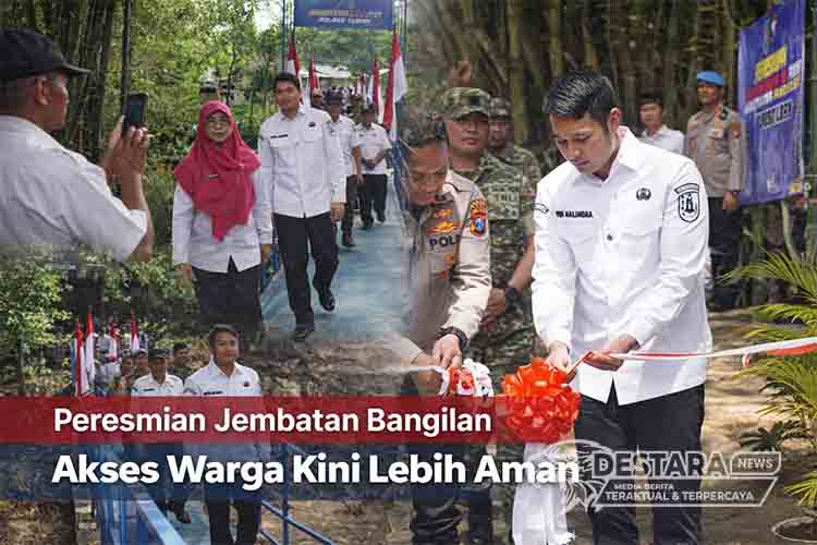 TUBAN | DN – Harapan panjang warga Dusun Sambong Lombok, Desa Bangilan, akhirnya terwujud. Jembatan bambu yang selama ini menjadi jalur utama kini berganti wajah menjadi Jembatan Merah Putih Presisi yang kokoh dan aman. Peresmian dilakukan pada Rabu (29/4) oleh Pemerintah Kabupaten Tuban bersama Polres Tuban, bertepatan dengan kegiatan Dialog Kamtibmas yang dihadiri Bupati Tuban Aditya Halindra Faridzky, Kapolres Tuban AKBP Alaiddin, serta jajaran Forkopimca.