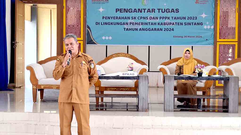 SINTANG, KALBAR (MDN) – Kepala Dinas Pendidikan dan Kebudayaan Kabupaten Sintang Yustinus .J SPd.M.A.P. arahan yang berharga jumlah calon pegawai negeri sipil (CPNS) dan pegawai pemerintahan dengan perjanjian kerja PPPK kegiatan ini merupakan bagian dari pengantar tugas dan penyerahan surat keputusan SK (CPNS) dan PPPK tahun 2023 di lingkungan Pemerintah Kabupaten Sintang