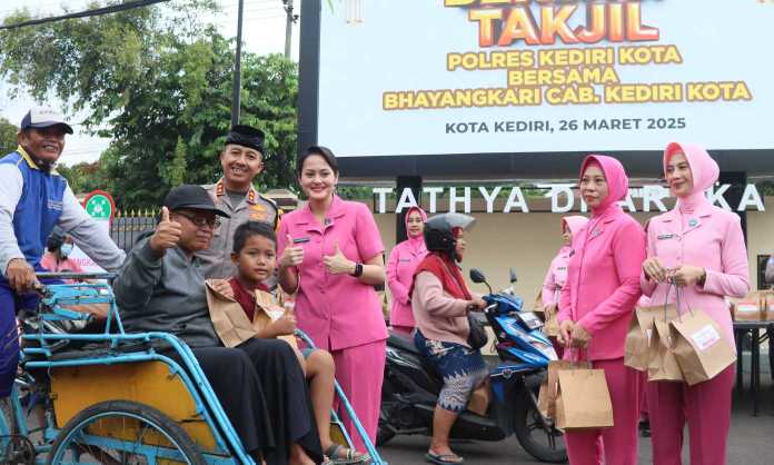 Kapolres Kediri Kota bersama Ketua Bhayangkari dan anggota Bhayangkari turun langsung membagikan takjil kepada para pengendara yang melintas. Kegiatan ini bertujuan untuk membantu masyarakat, khususnya umat Muslim, dalam menjalankan ibadah puasa dengan lebih mudah dan penuh kebahagiaan.