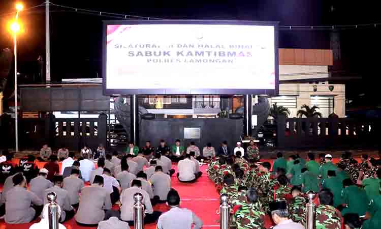 LAMONGAN | DN – Polres Lamongan menggelar kegiatan silaturahmi dan halal bihalal bertajuk “Sabuk Kamtibmas” pada Kamis sore (16/4/2026) di halaman Mapolres Lamongan. Acara ini dihadiri ratusan peserta dari berbagai elemen masyarakat, sebagai upaya mempererat hubungan Polri dengan warga.