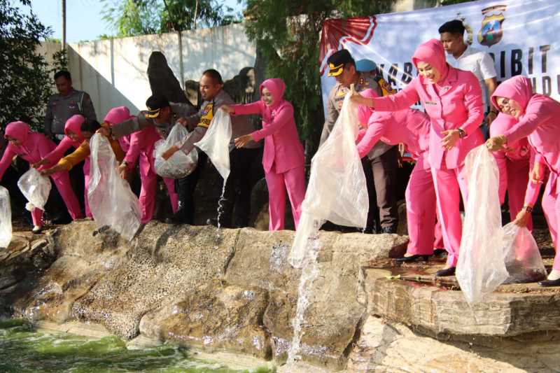 SUMENEP | DN – Dalam upaya mendukung program swasembada pangan, Kapolres Sumenep AKBP Henri Noveri Santoso bersama pejabat utama (PJU) Polres Sumenep dan Bhayangkari Cabang Sumenep melaksanakan kegiatan penaburan bibit ikan di kolam milik Polres Sumenep.