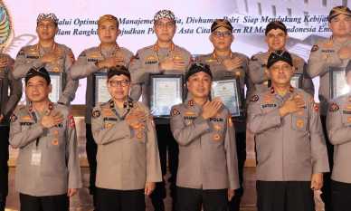 Atas prestasi tersebut, Divisi Humas Polri memberikan Tiga penghargaan sekaligus untuk Bidhumas Polda Jawa Timur saat Rakernis Humas Polri 2025 di Gedung Serbaguna, Akademi Kepolisian (Akpol) Semarang, Jawa Tengah, Rabu (7/5/2025).