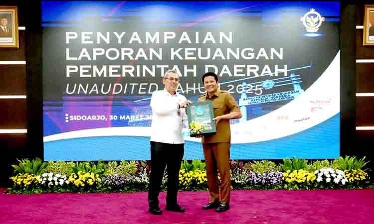 Penyerahan dilakukan langsung oleh Bupati Sidoarjo, H. Subandi, didampingi Sekretaris Daerah Fenny Apridawati, di kantor BPK RI Perwakilan Jawa Timur, Jalan Raya Ir. H. Juanda, Kecamatan Gedangan, Senin (30/3/2026). Kegiatan ini berlangsung serentak bersama seluruh pemerintah daerah se-Jawa Timur.